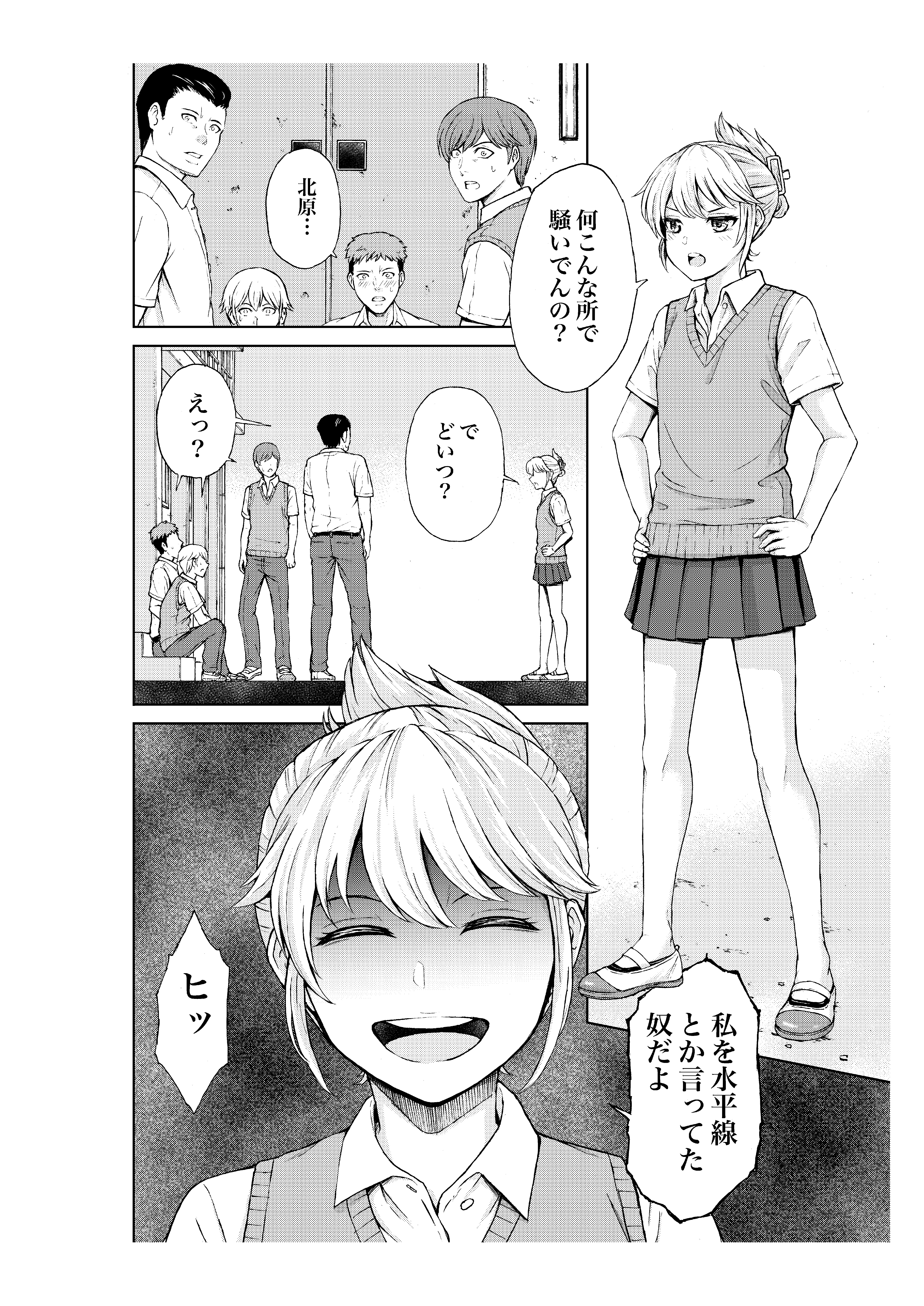 ある高校の放課後ー 玄田は友人らと共にスマホ画像を見ながらどの女子がタイプか話し合っていた。 各々に好みのタイプを挙げていく中、玄田が挙げたのは北原という身長も低く胸も小さい女の子だった。 それを聞き友人たちは弄りを交えさらに話を盛り上げるのだが、その背後現れたのが件の北原でー?