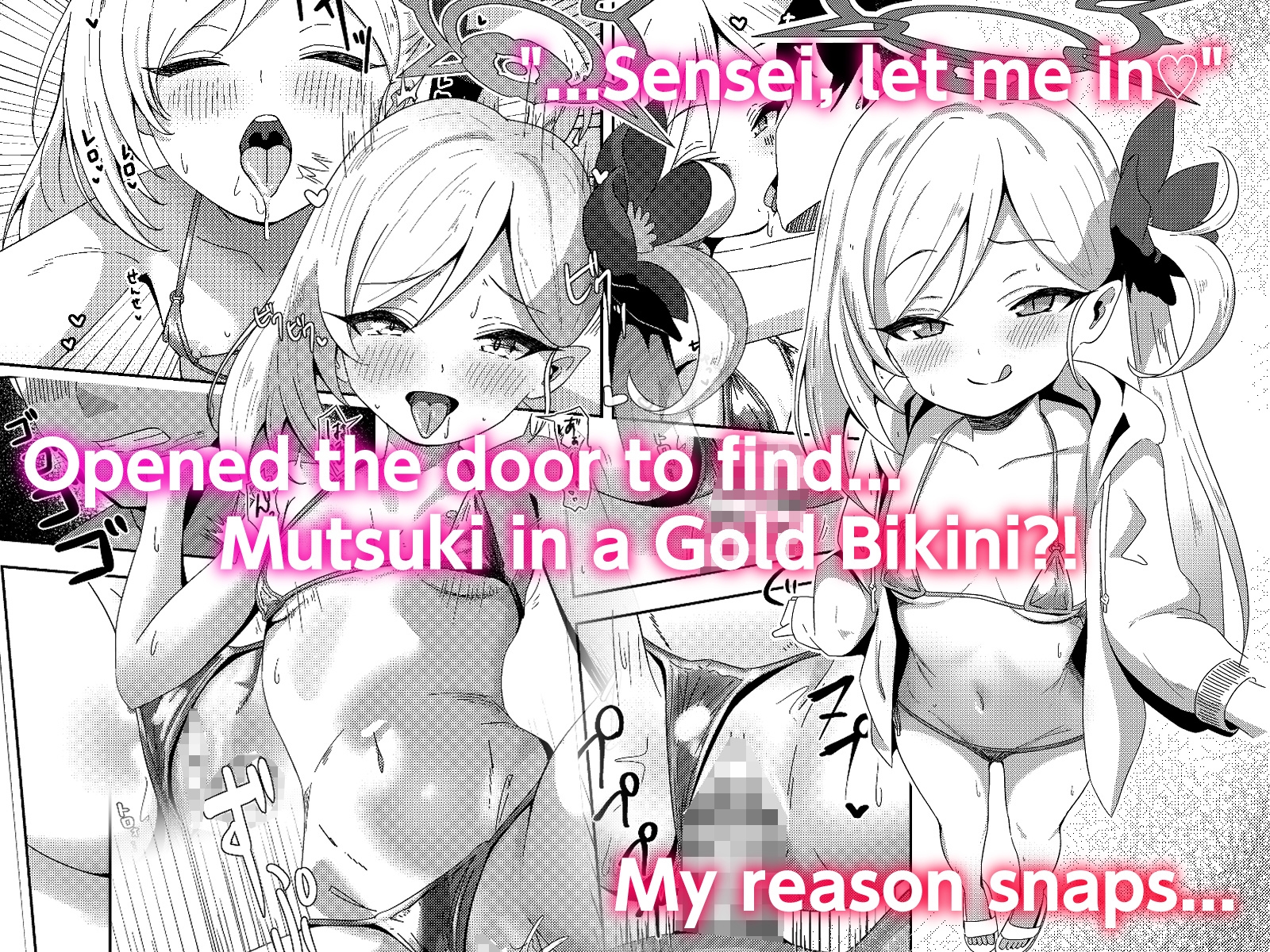 After finishing a mission far from home, I headed to the luxury hotel Mutsuki had arranged for me. I tried to maintain my composure as a teacher, but the person who appeared at my room was—Mutsuki, dressed in a bold gold bikini.