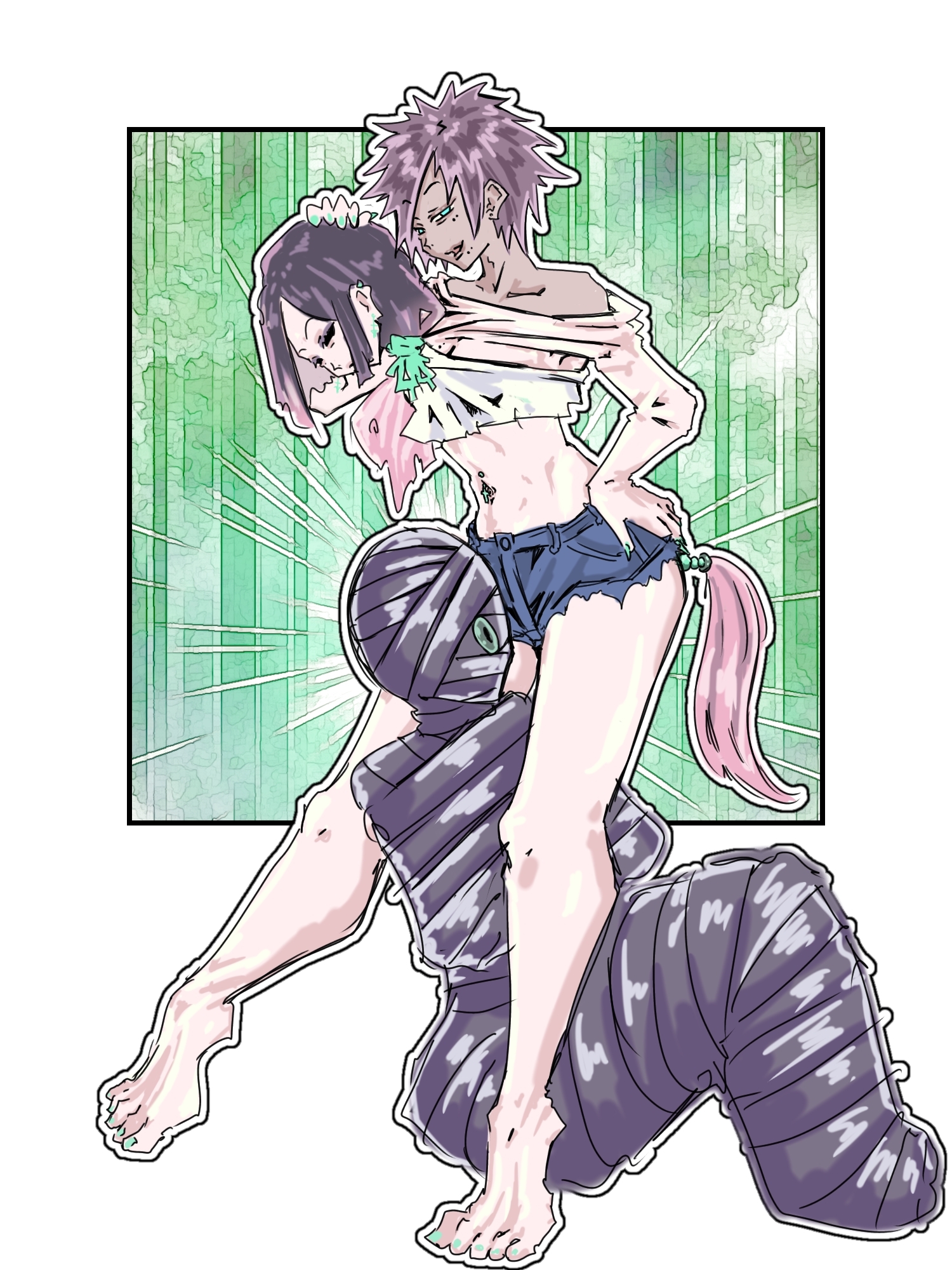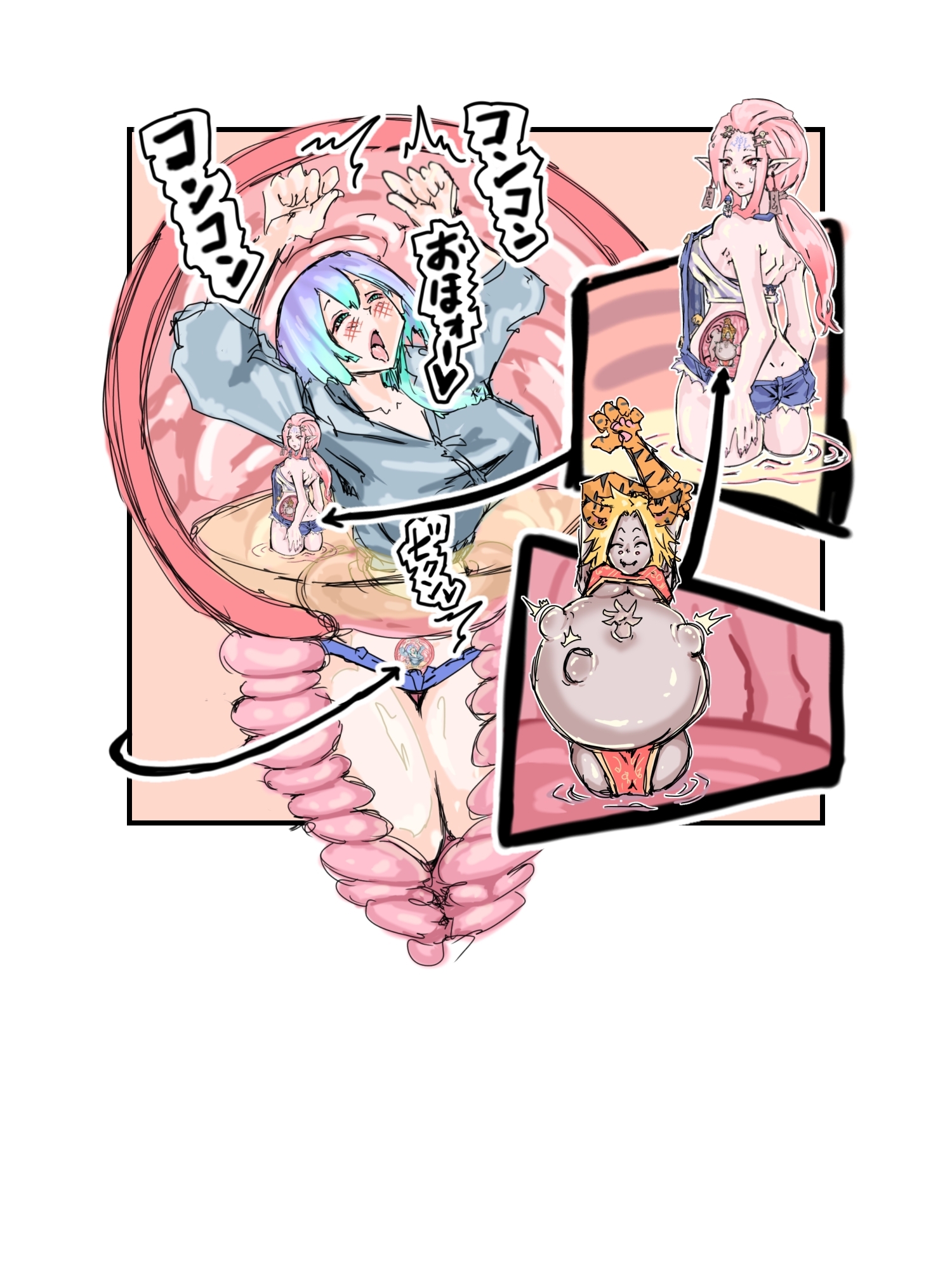 ひょんな事から、モブのチャラ男が下から入って臍から出てしまい、抜けなくなってしまう。 -