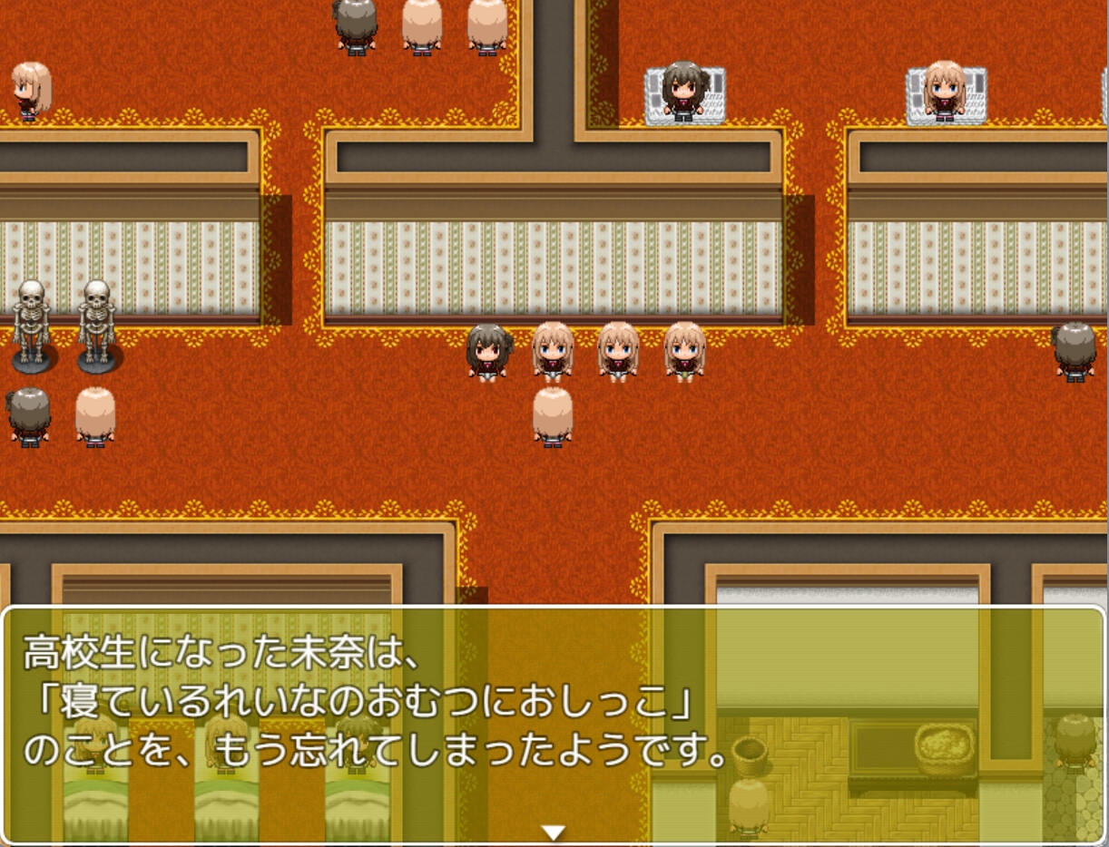 本編をグッドエンドでクリア(みな、れいなが二人ともトイレでおしっこする)すると、タイトル画面から選択できるようになります。