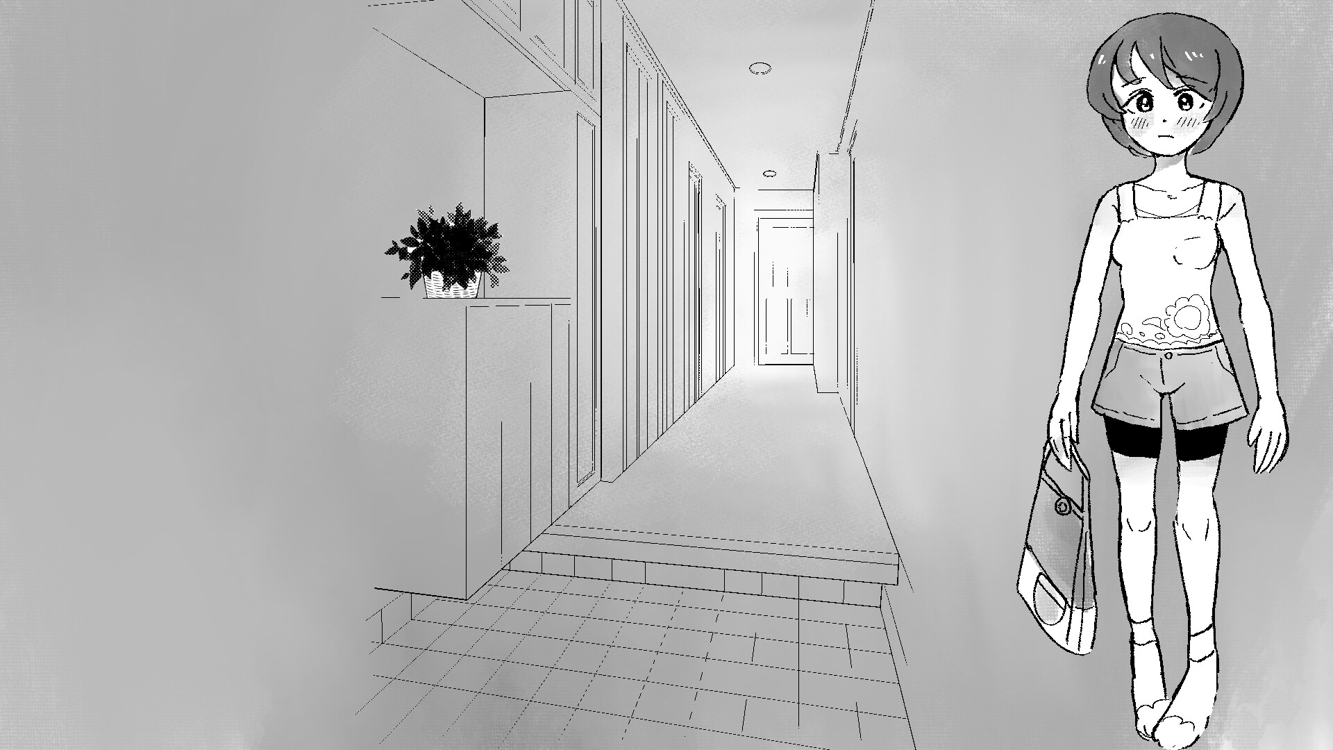 あなたは学校の宿直室に寝泊まりしている男となり、少女に近づきます。