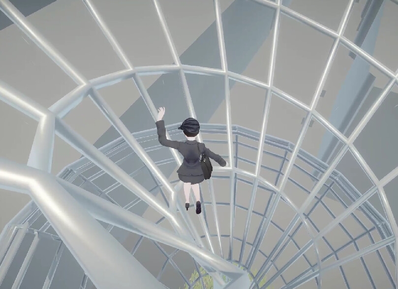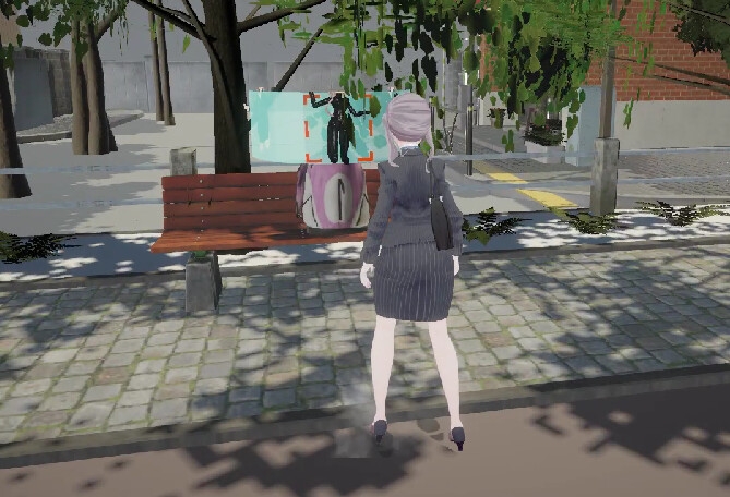日本を舞台にしたアニメ調の世界で、魅力的なOL女性が果てしない高みへと挑む。