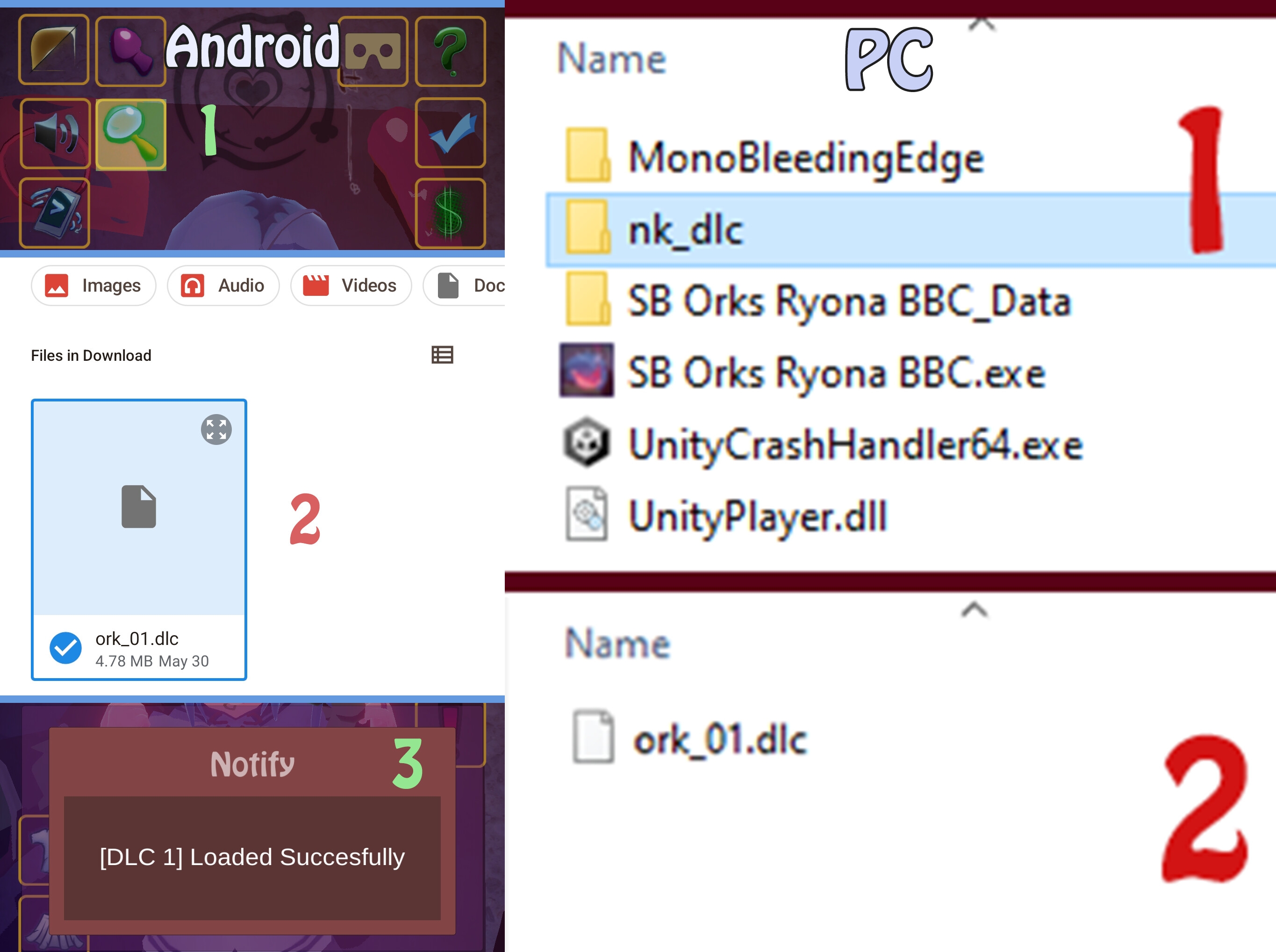1. DLC 파일을 게임 폴더의 "nk_dlc" 폴더로 옮기세요. (폴더가 없는 경우 빈 폴더를 만들고 "nk_dlc"라는 이름을 지정하세요.)