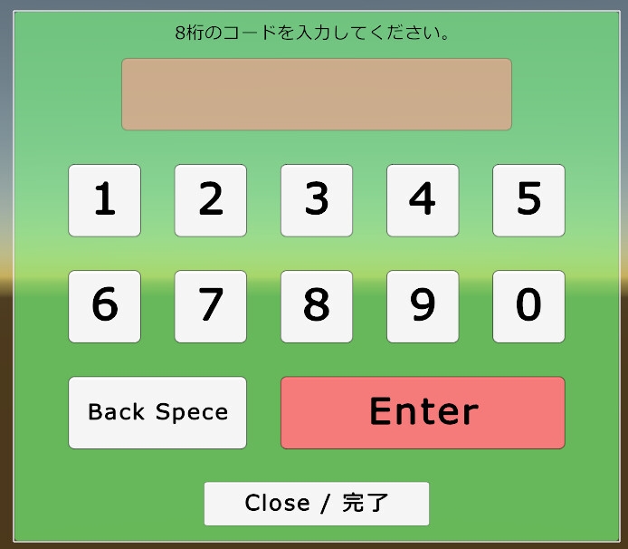 2. 表示されるパネルに8桁のコードを入力し「Enter」ボタンを押します。