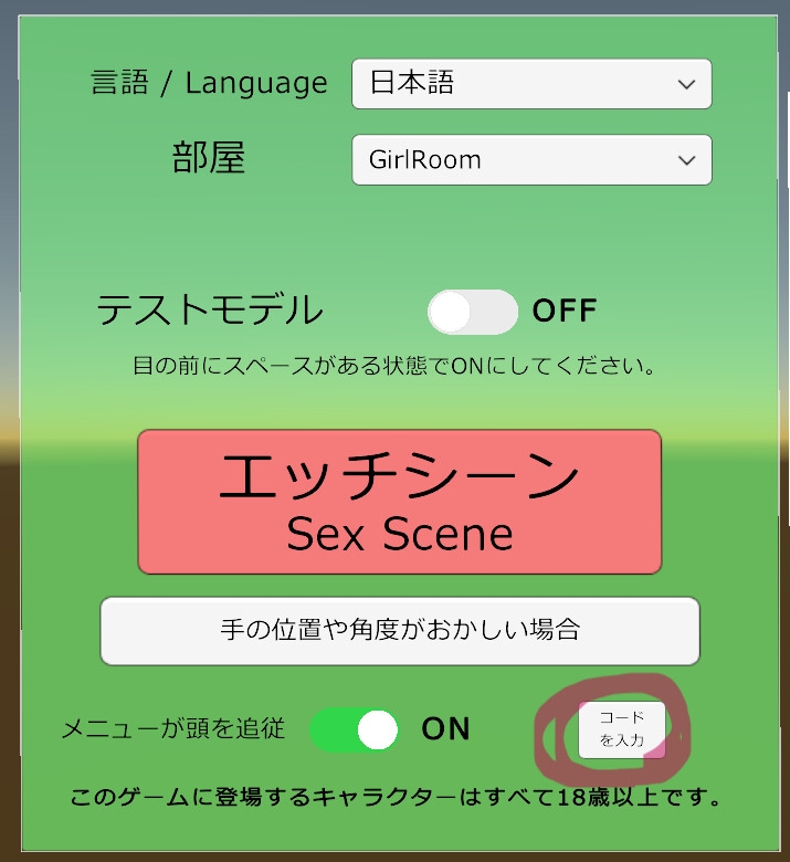 1. メニュー右下の「コードを入力」ボタンをクリックします。