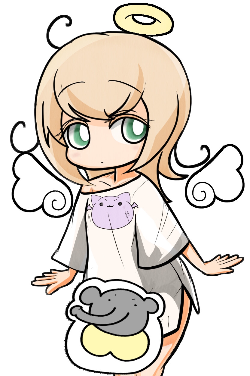 主人公は天使の女の子。ある日目覚めると、とんでもない弱点・・・その名もきん◯◯を生やされていた!