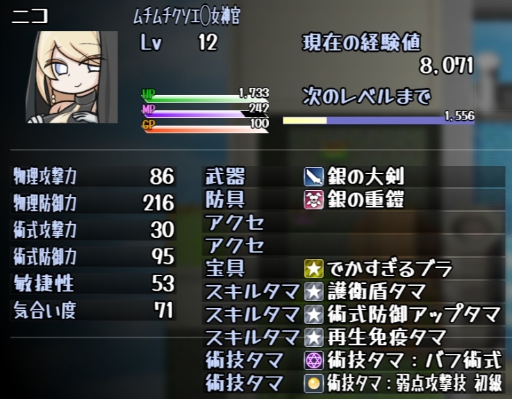 だいたいこんな感じっていうアレ。(画面は開発中のものだけど、装備品名がちょっと違うとかくらい。)