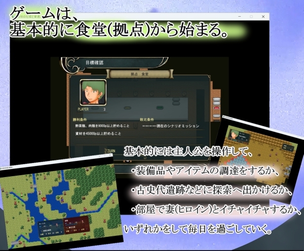 食堂で自室に戻ったり、探索から帰還した日の夜に発生する、妻(ヒロイン)とのエッチシーンです。