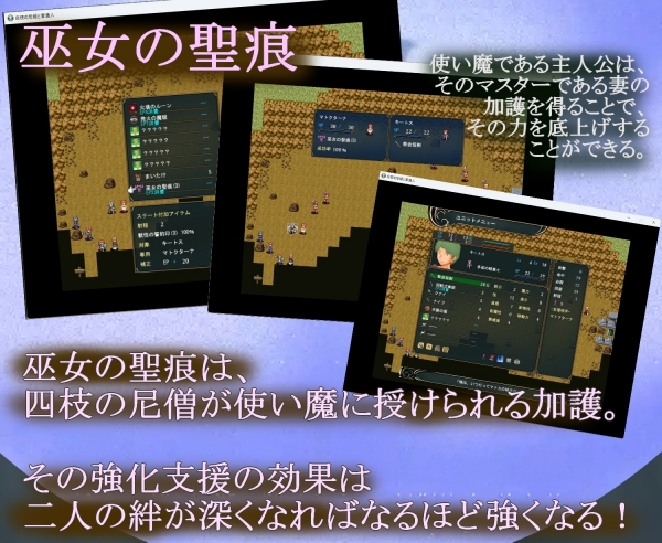 最初の頃は強化支援もそれほどの力を持ちませんが、妻との霊的な繋がりを深めていけば、その効果も強くなっていきます。うまく活用して、普通人ゆえの力不足を補いましょう!