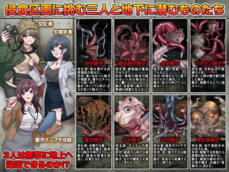 だが、各施設は暗闇に潜み迷い込んだ餌に襲いかかろうと身を隠している不気味な生物たちが大繁殖し、かつて賑やかだった日常の痕跡は官能幻覚の罠となっていた…。
