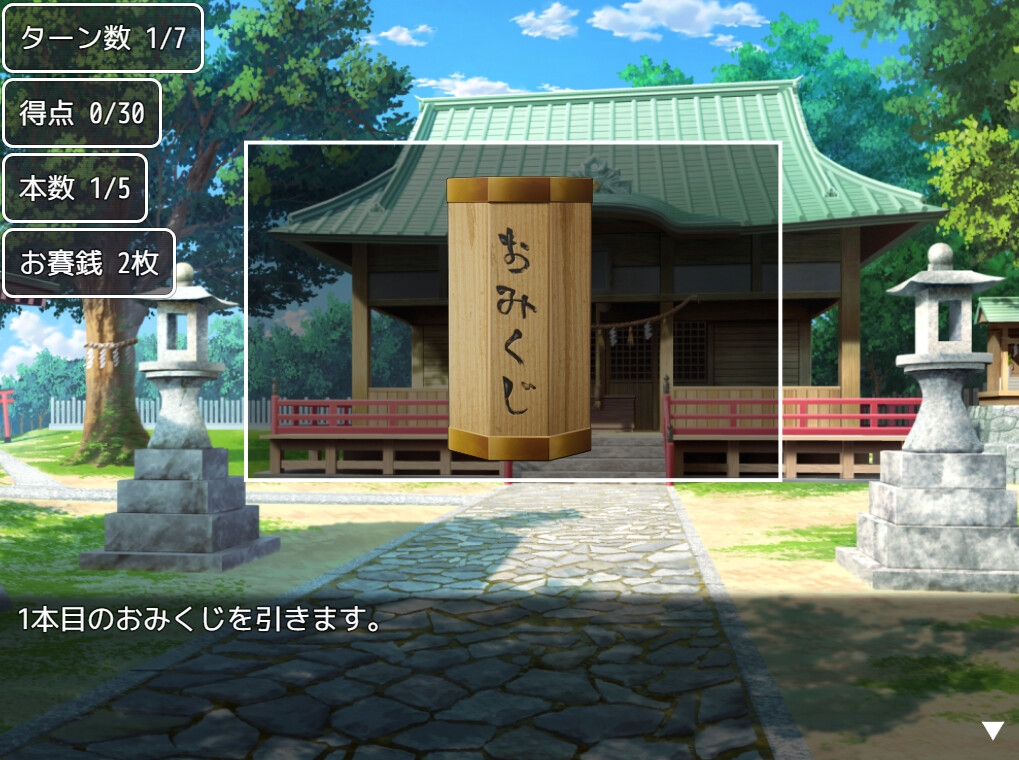ロシアンルーレット風のおみくじを引いていくシンプルなゲームとなっております。