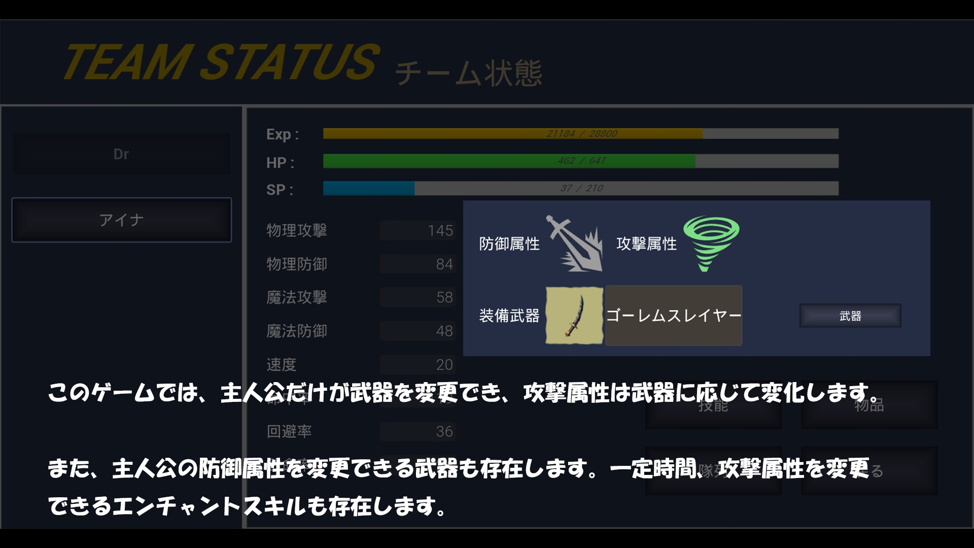 ゲームでは、主人公だけが武器を変更でき、攻撃属性は武器に応じて変化します。