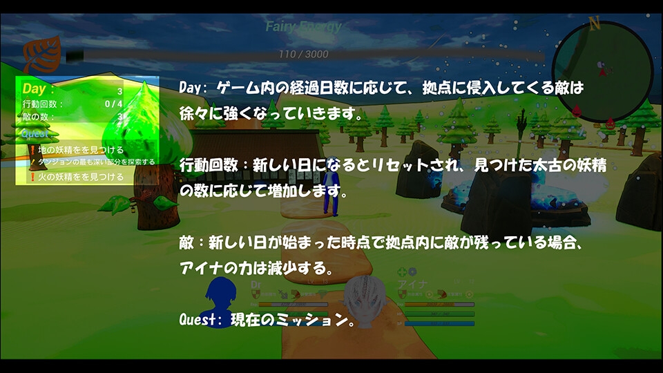 行動回数:新しい日になるとリセットされ、見つけた太古の妖精の数に応じて増加します。
