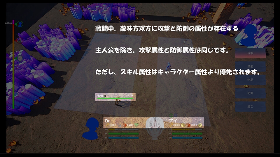 戦闘中、敵味方双方に攻撃と防御の属性が存在する。