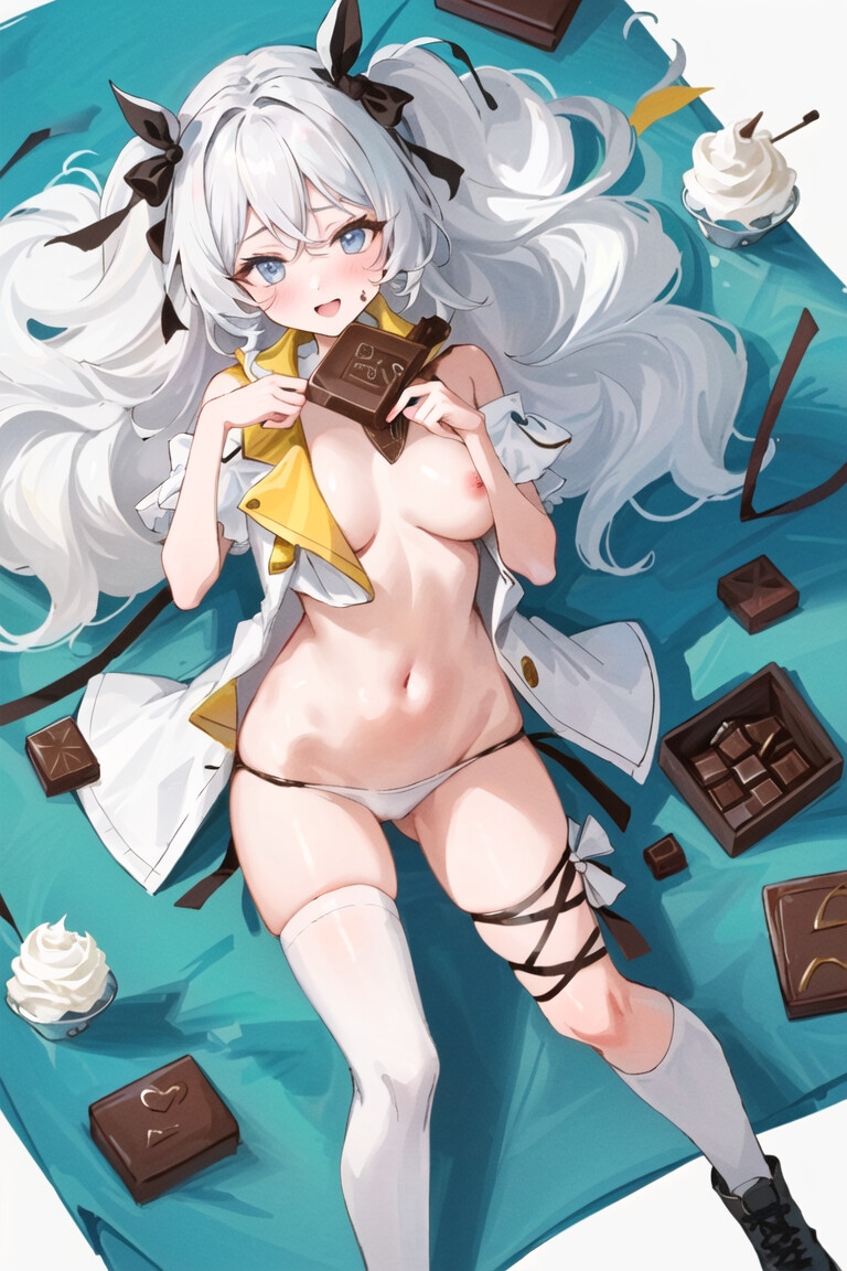 チョコレートとホイップクリームまみれになった女の子のイラスト集です!