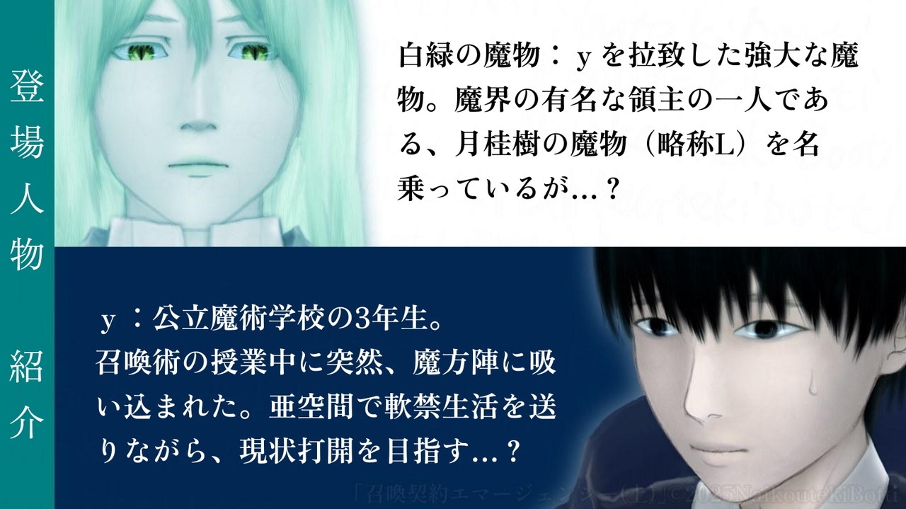 しかしyは異世界の生命体、魔物を召喚・使役する召喚術の授業で、ありえない事故を起こしてしまう…