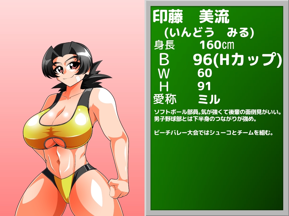 巨乳爆乳の運動部員達や体育教師と砂浜でおっぱいプレイをするCG集です。