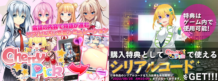 本作品は『CherryPick』内で使用出来る『特典VIPポイント×40』『特典ガチャポイント×100』がもらえるシリアルコードつき!