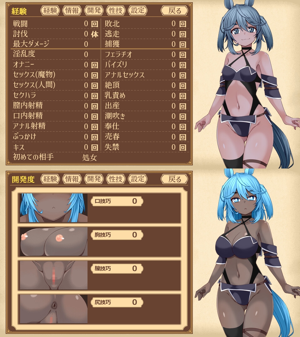エロステータスが上昇すれば乳首色や噴乳の設定が解放され、CGに反映されます。