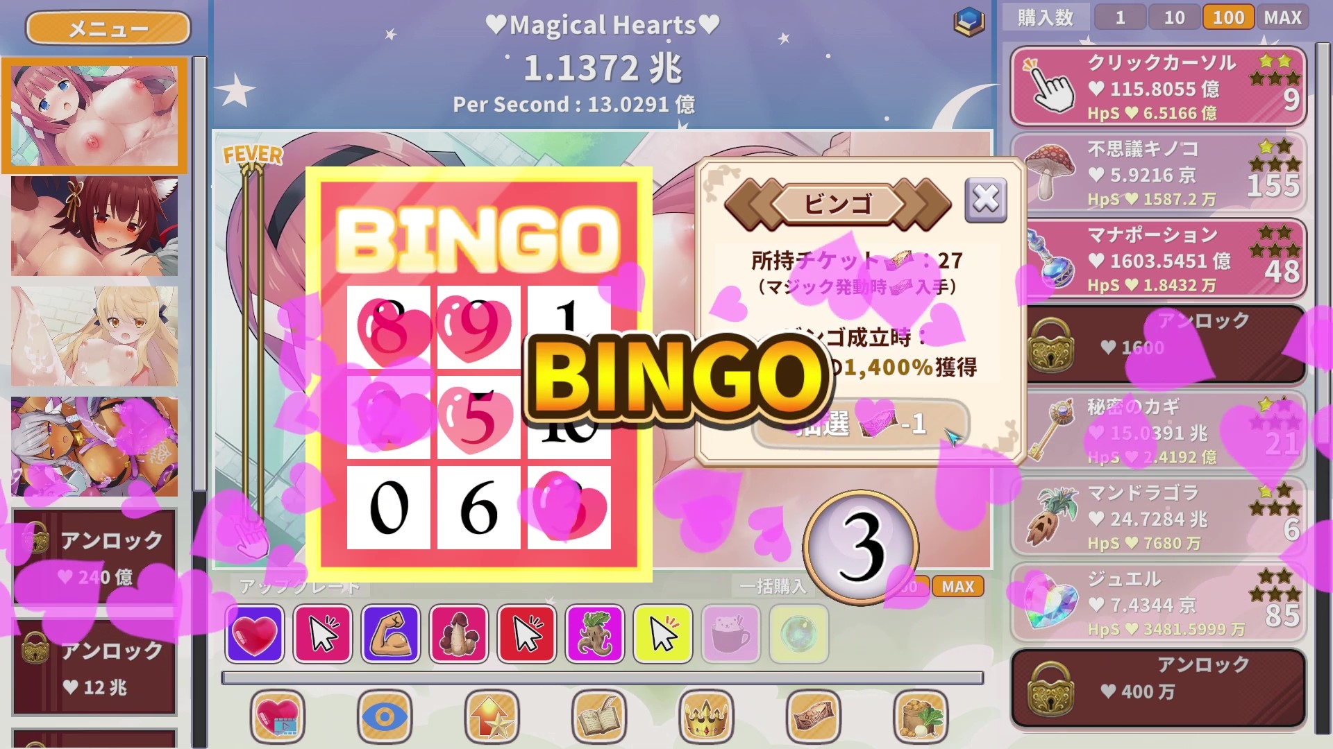 ノーマルフィーバー:ハート生産力とクリック生産力に強力なボーナス!