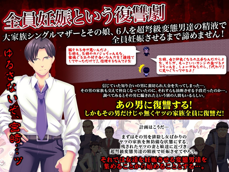大家族シングルマザーとその娘、6人を超弩級変態男達の精液で全員妊娠させるまで諦めません!