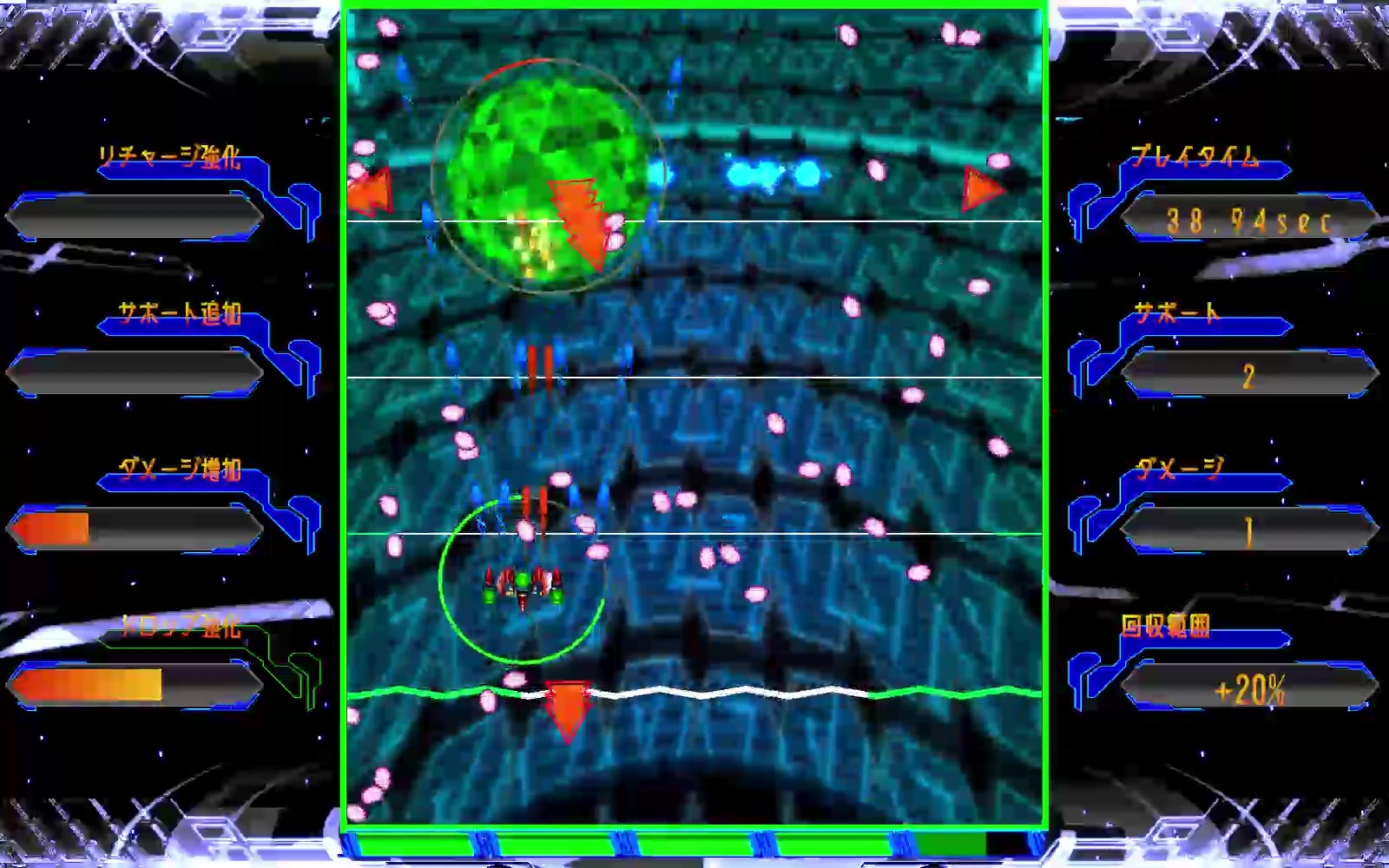 自機位置での能力強化と、ユニークなスキルシステム。自分だけの最強コンボを見つけ出せ!