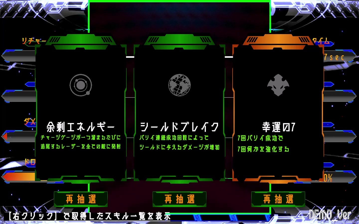 提示された3種のスキルから1つを選び、ビルドの方向性を決定。