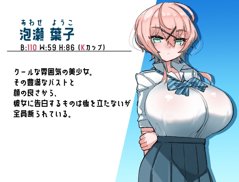풍만한 가슴과 아름다운 외모 탓에 고백하는 이들이 끊이지 않지만, 모두 거절하고 있다.