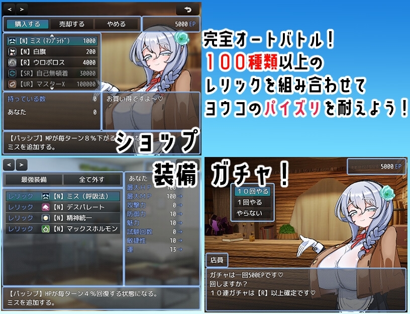 가슴 안에 사정하고 싶은 충동을 참아내며, 동경하는 그녀에게 마음을 전하는 RPG입니다.