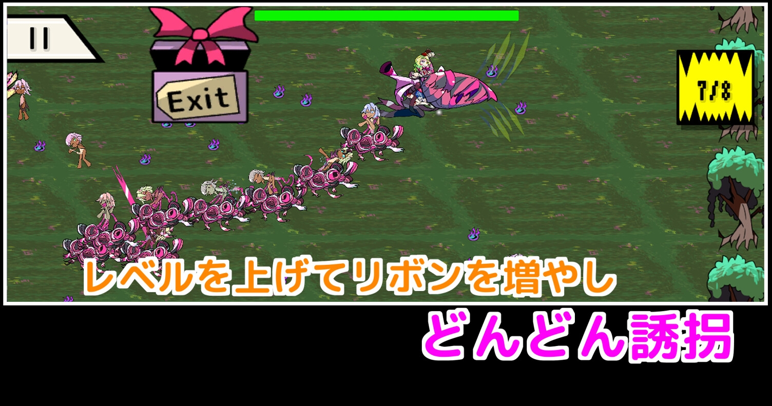 ・一定レベル到達すると「Exit」が配置されます。触ることでゲームクリアとなり捕獲した人を持ち帰れます。
