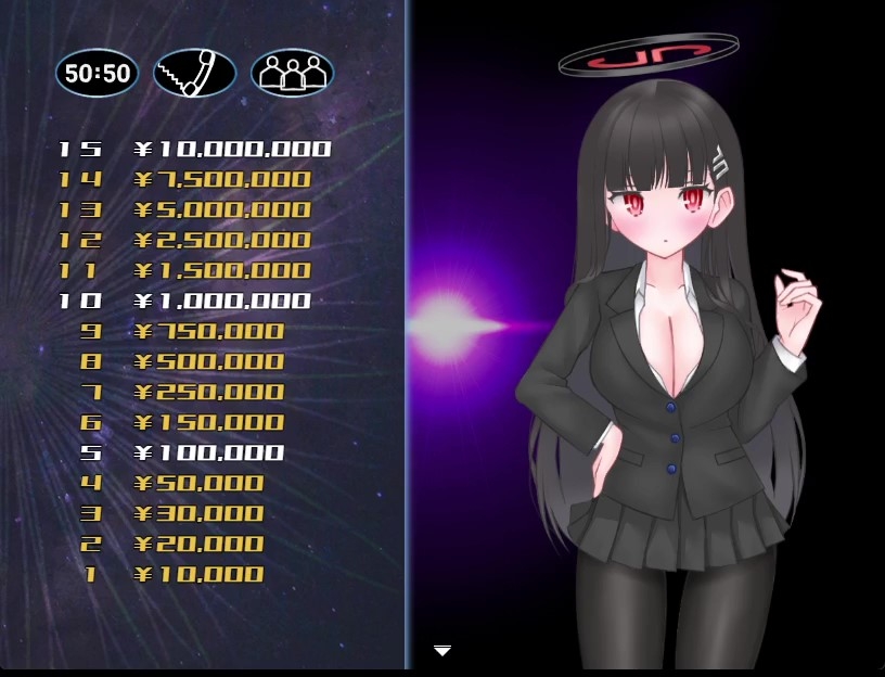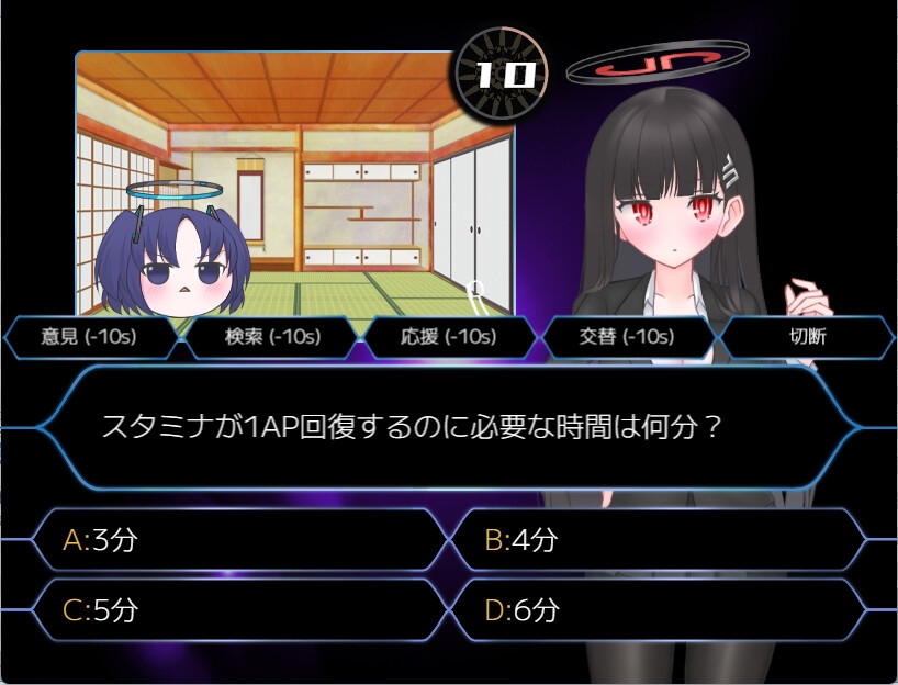 冒頭でも記載したように、本作品は『ブ〇ーアーカイブ』の非公式・二次創作作品です。『ブ〇ーアーカイブ』『Who Wants to Be a Millionaire?』『クイズ$ミ〇オネア』それぞれの公式および関係各社とは一切関係ございません。