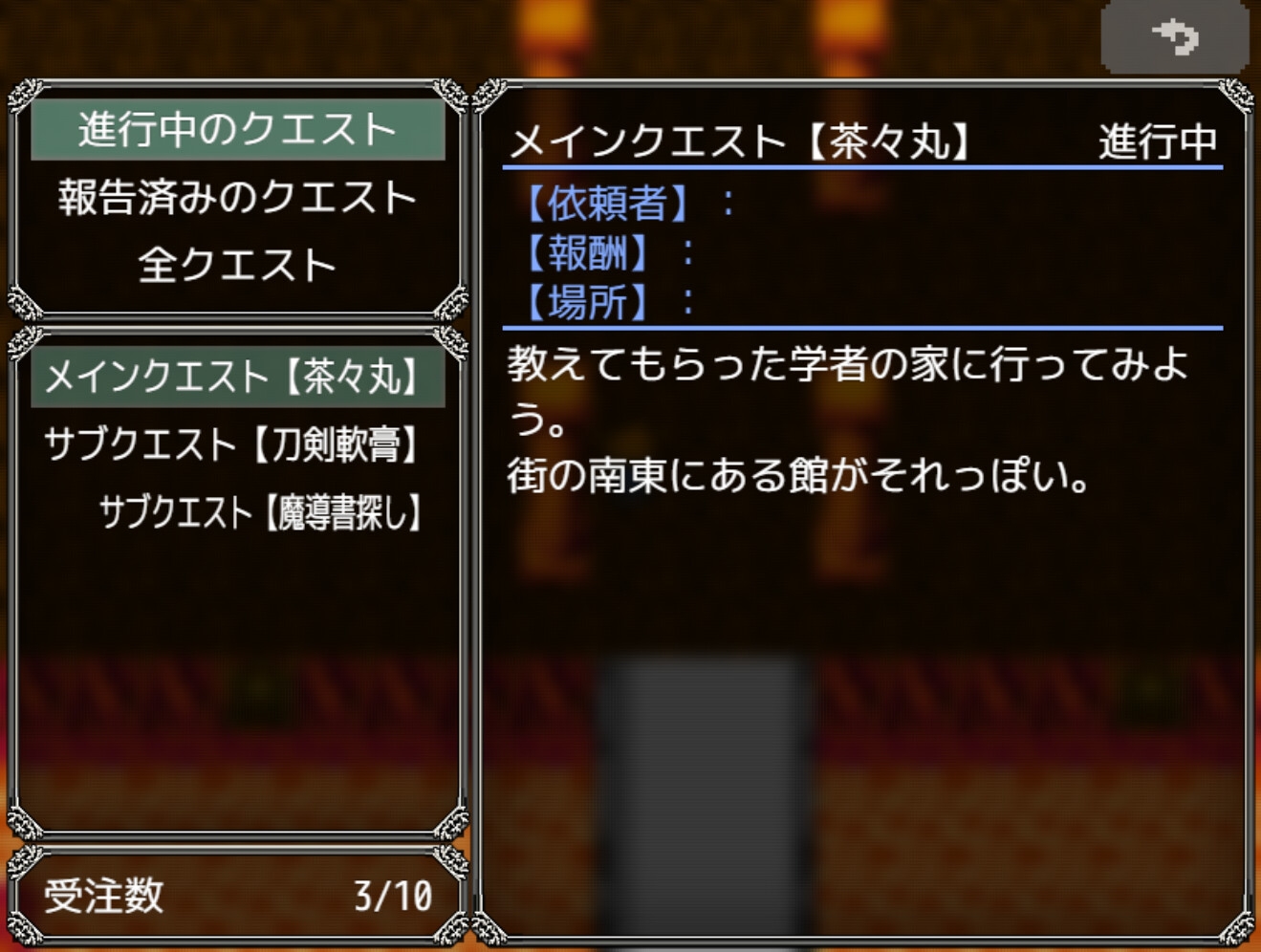 また行き先が分からなくなった際はメインクエストの情報欄を見ることで、行き詰らないよう配慮しています。