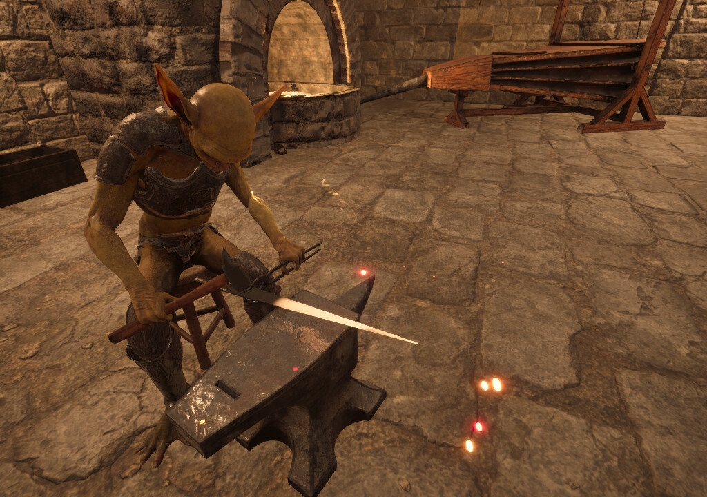 剣、盾、長剣、弓など、様々な武器が存在します。武器によって攻撃モーションやスタミナ消費、プレイスタイルが変化します。また、捕らえられた後の脱出時は、周囲にある武器を利用しなければならないため、多様なプレイが求められます。 -