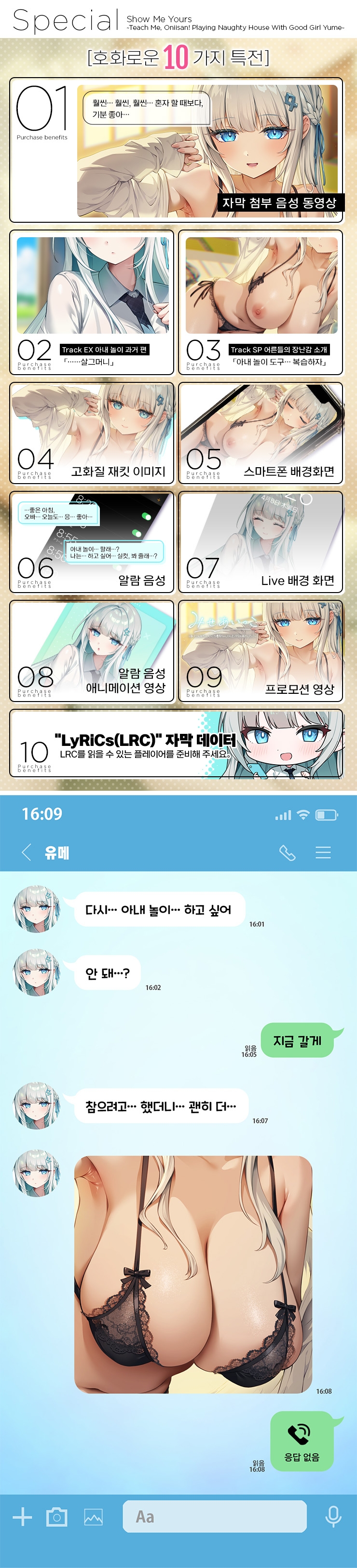 ![서로 보여 주기 ~알려 줘, 오빠. 말 잘 듣는 유메 짱과의 야한 아내 놀이~ [青春×フェティシズム] 서로 보여 주기 ~알려 줘, 오빠. 말 잘 듣는 유메 짱과의 야한 아내 놀이~ [青春×フェティシズム]](http://img.dlsite.jp/modpub/images2/parts/RJ01455000/RJ01454130/31d04612bff6b142ec531de0caf7a00e.jpg)