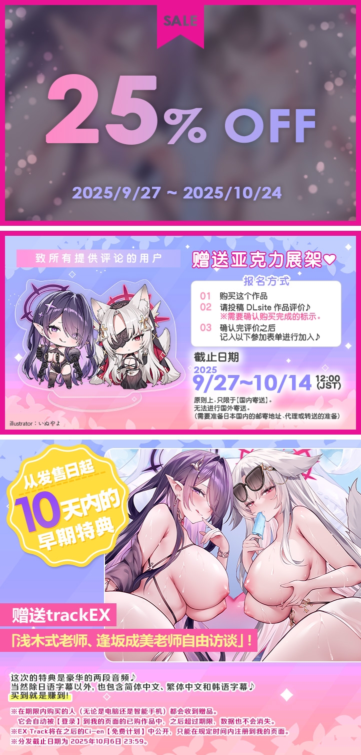 请避免向Dlsite,出演者,画师,剧本担当等非官方的咨询。