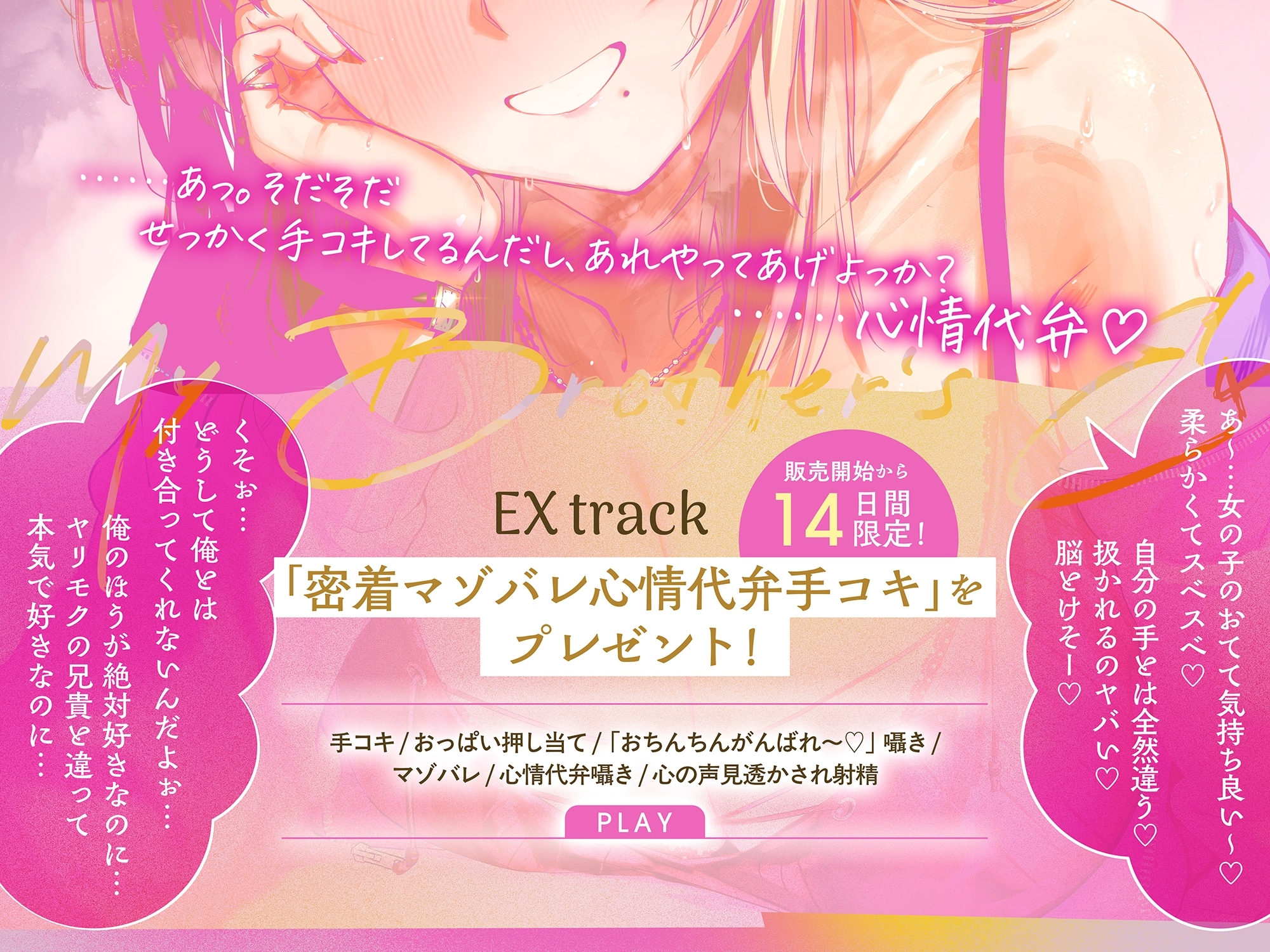 ・ヒロインは“兄の元カノ”。元カレの弟だったお陰で、元カレの弟だったせいで――あなたは巨乳女子大生の標的にされてしまいます。距離感バグっててえっちな誘惑をしてくるのに絶対自分のモノにはならない。絶対にヤらせてくれない。滾った期待と性欲を裏切られまくって、情緒と性癖を狂わされちゃいましょう♪