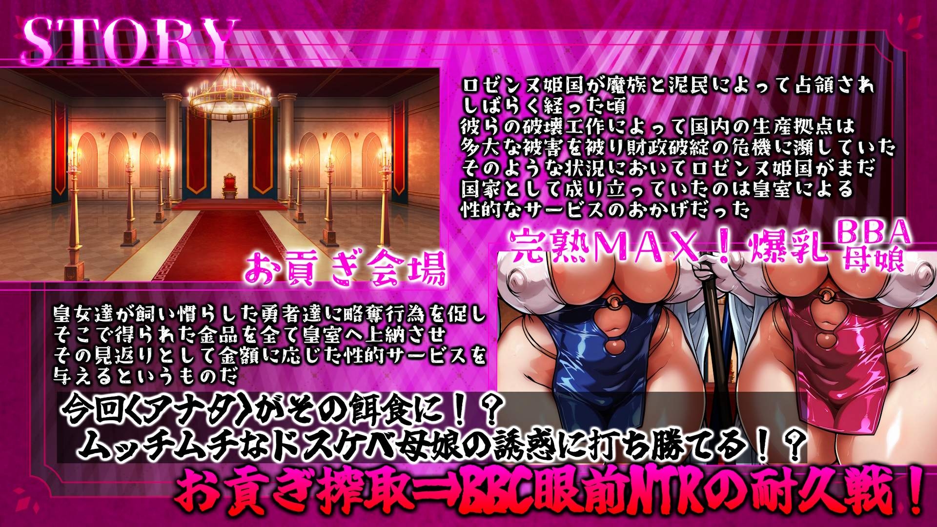 陥落した女性主体国家「ロゼンヌ姫国」を舞台に繰り広げられるドスケベ物語