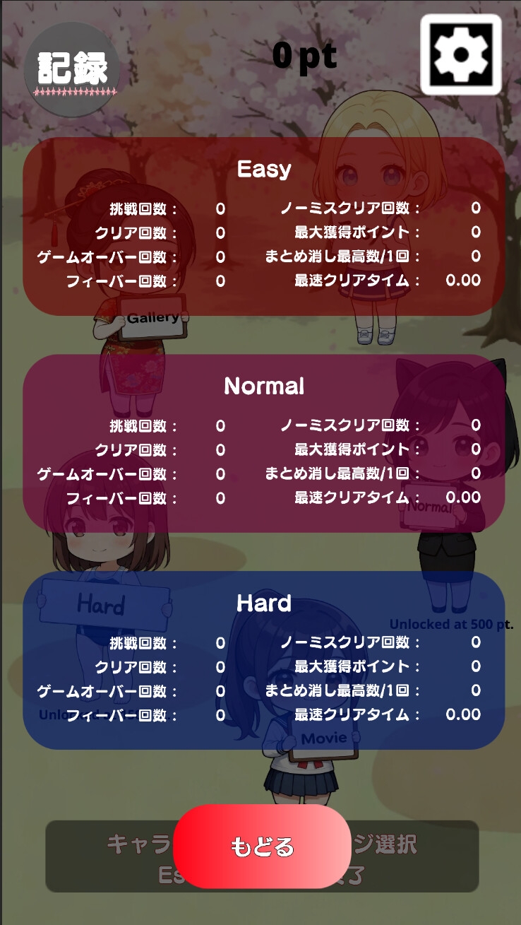 ステージ内で獲得したポイントは合算されていき、一定値を超えると次の難易度が開放されます。