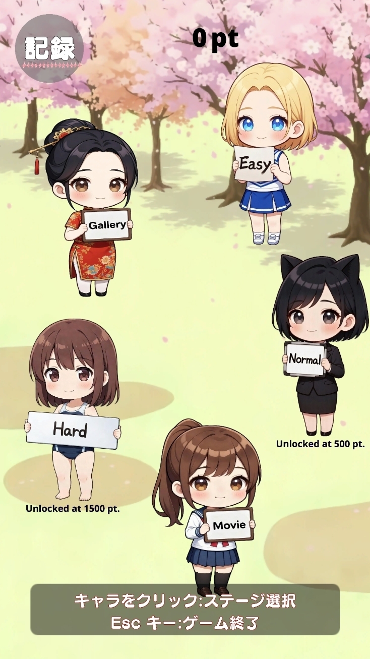 難易度のキャラをクリック選択するとステージ選択ウインドウが開きます。