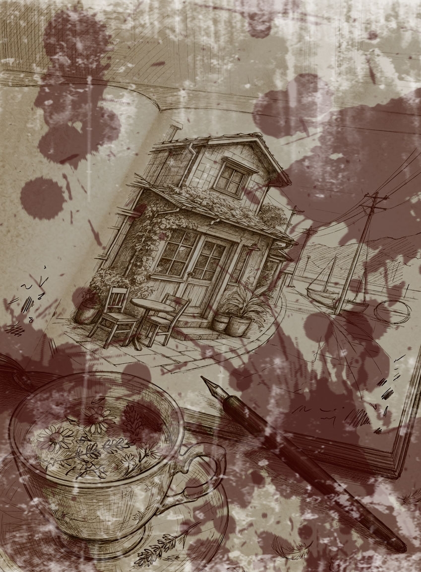 描きかけのまま手は止まり、気づけばまた視線は遠くへ向いている。
