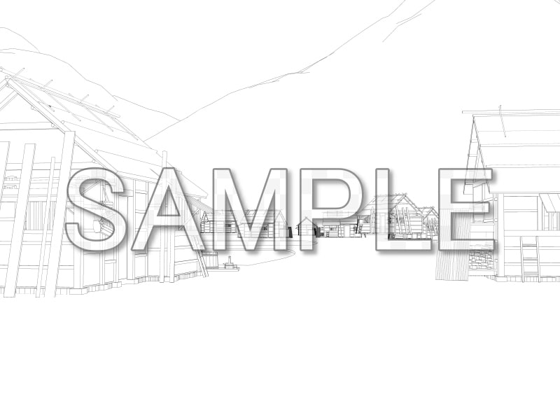 カラー背景江戸編で使用した背景素材を元に、線画と影を抽出した背景線画素材集です。