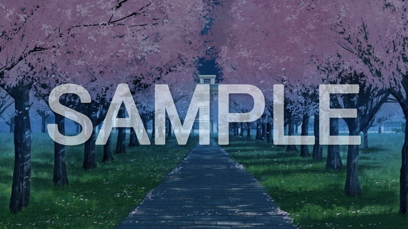 ・桜並木は舞う花びら差分が3種、奥に校舎が写っている学園差分