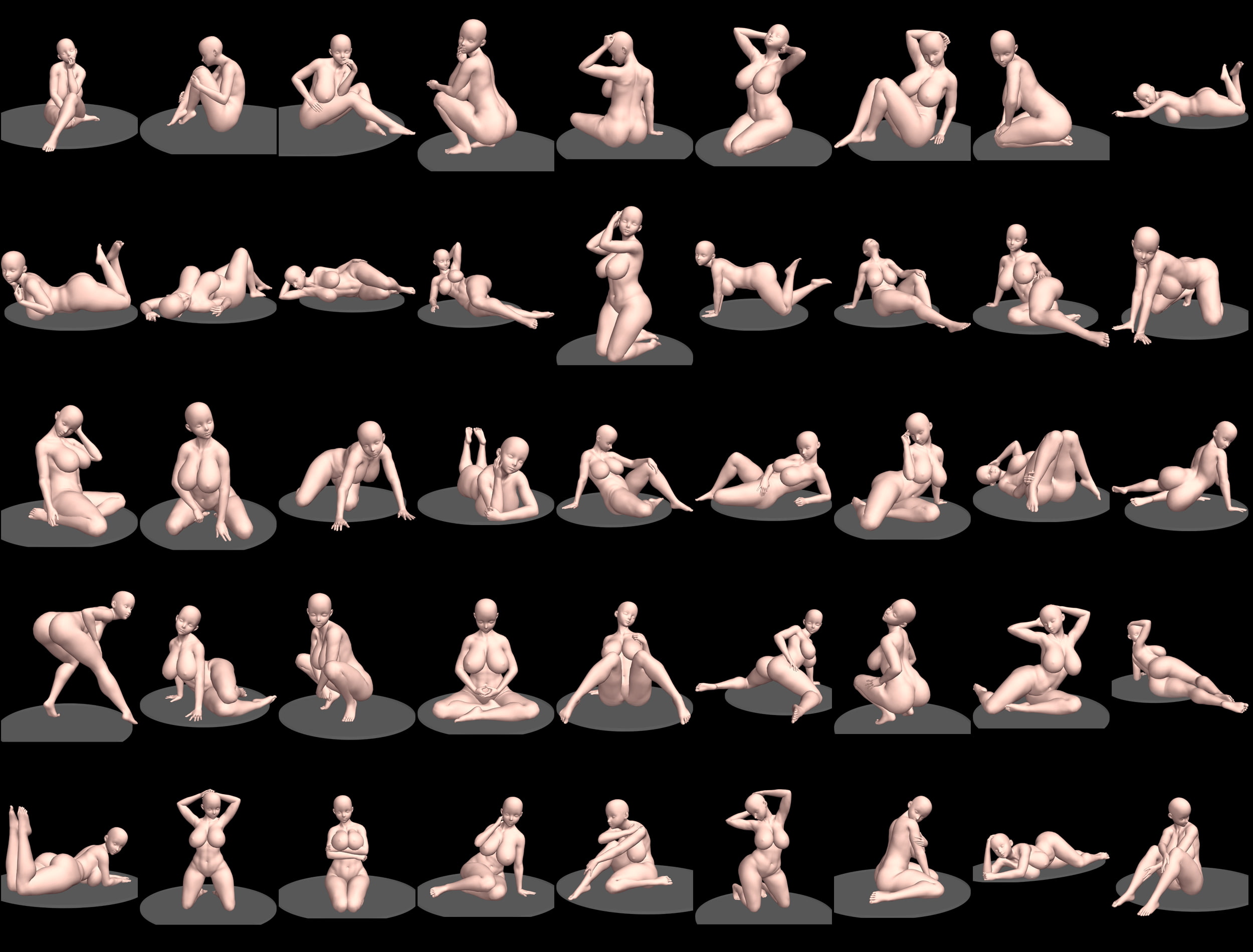 寝そべる、しゃがむ、座るなどのポーズを45種類収録しました。