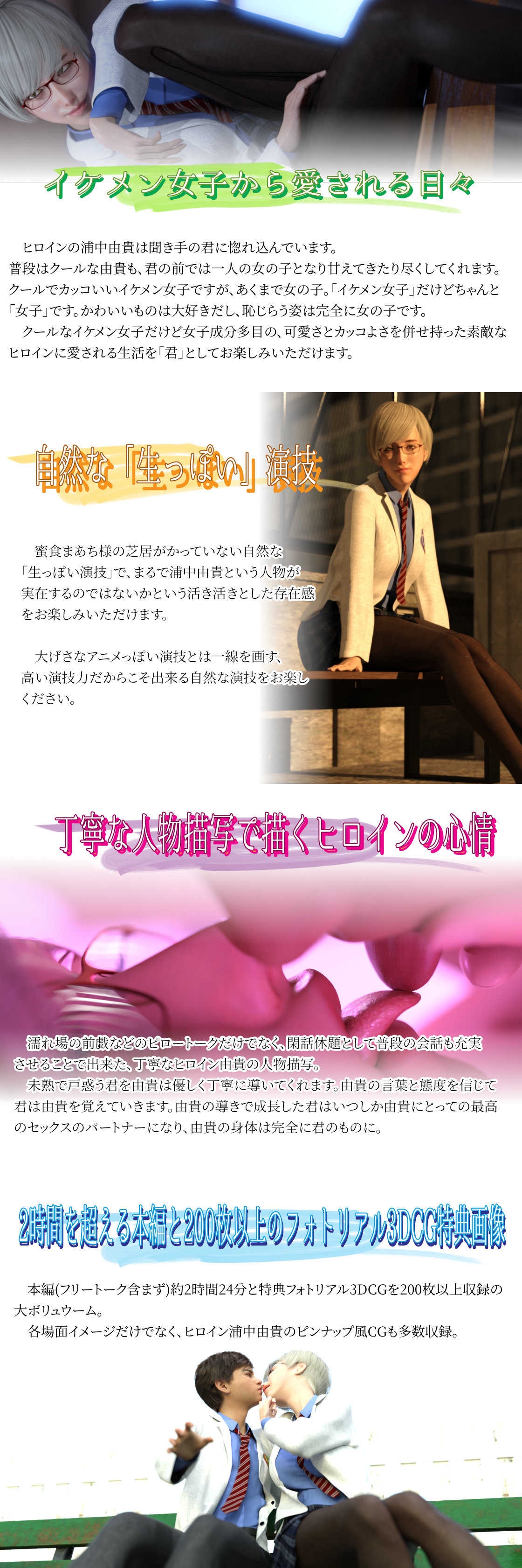 クールなイケメン女子だけど女子成分多目の、可愛さとカッコよさを併せ持った素敵なヒロインに愛される生活を「君」としてお楽しみいただけます。