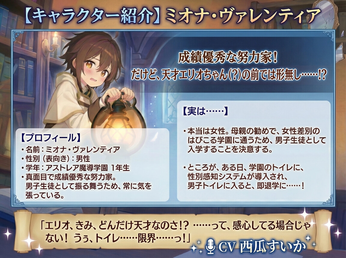 ![【おしがま × 叙述トリック】男装ミオナちゃんと女装エリオくん [おしがま堂] 【おしがま × 叙述トリック】男装ミオナちゃんと女装エリオくん [おしがま堂]](http://img.dlsite.jp/modpub/images2/parts/RJ01428000/RJ01427524/d9310806bef122546dbf5e0b771ce0cb.jpg)