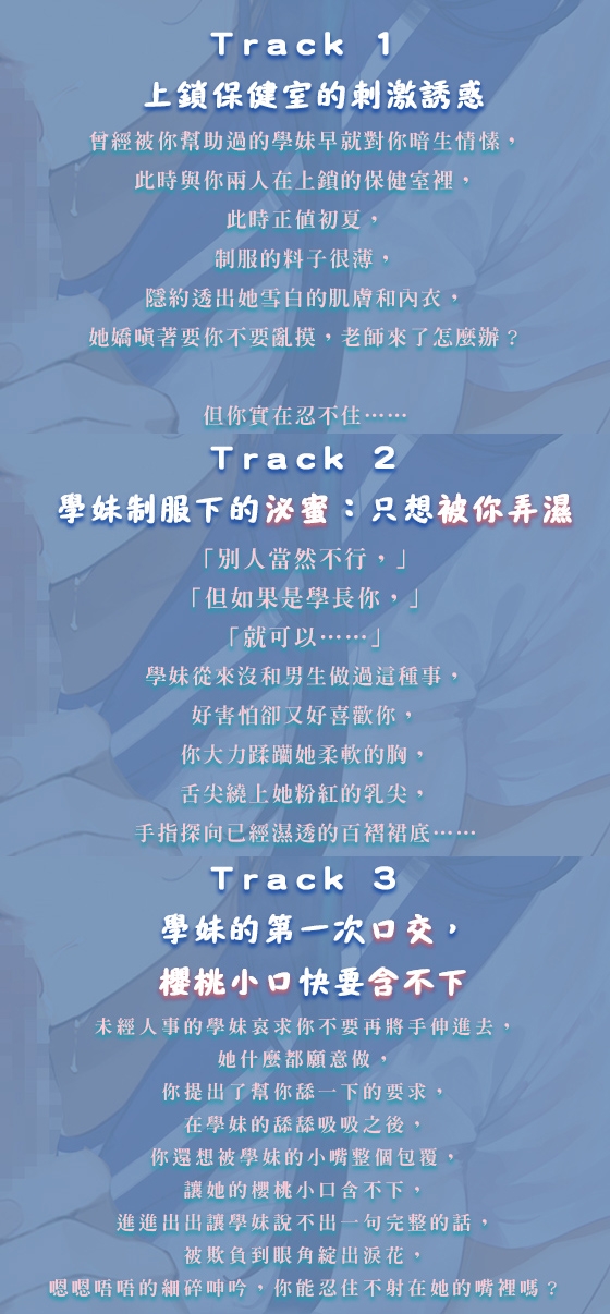 ◆Track 2:《學妹制服下的泌蜜:只想被你弄濕》 05:38