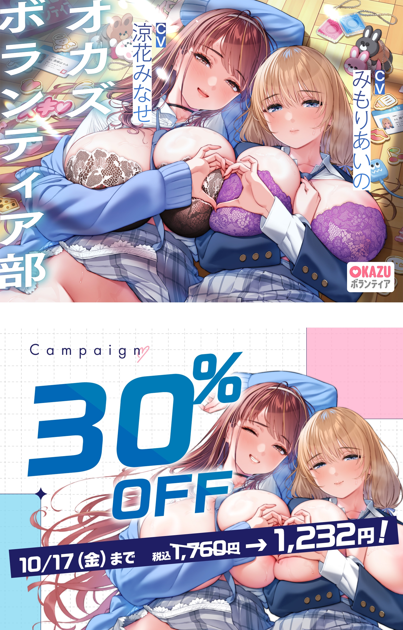 日々、オカズボランティア部として男子生徒にズリネタを提供してきた責任を捨て、もう一生あなたのものになることを決意したはつみとここねが、ふたり同時に誓いのファーストキスを捧げてくれます♡