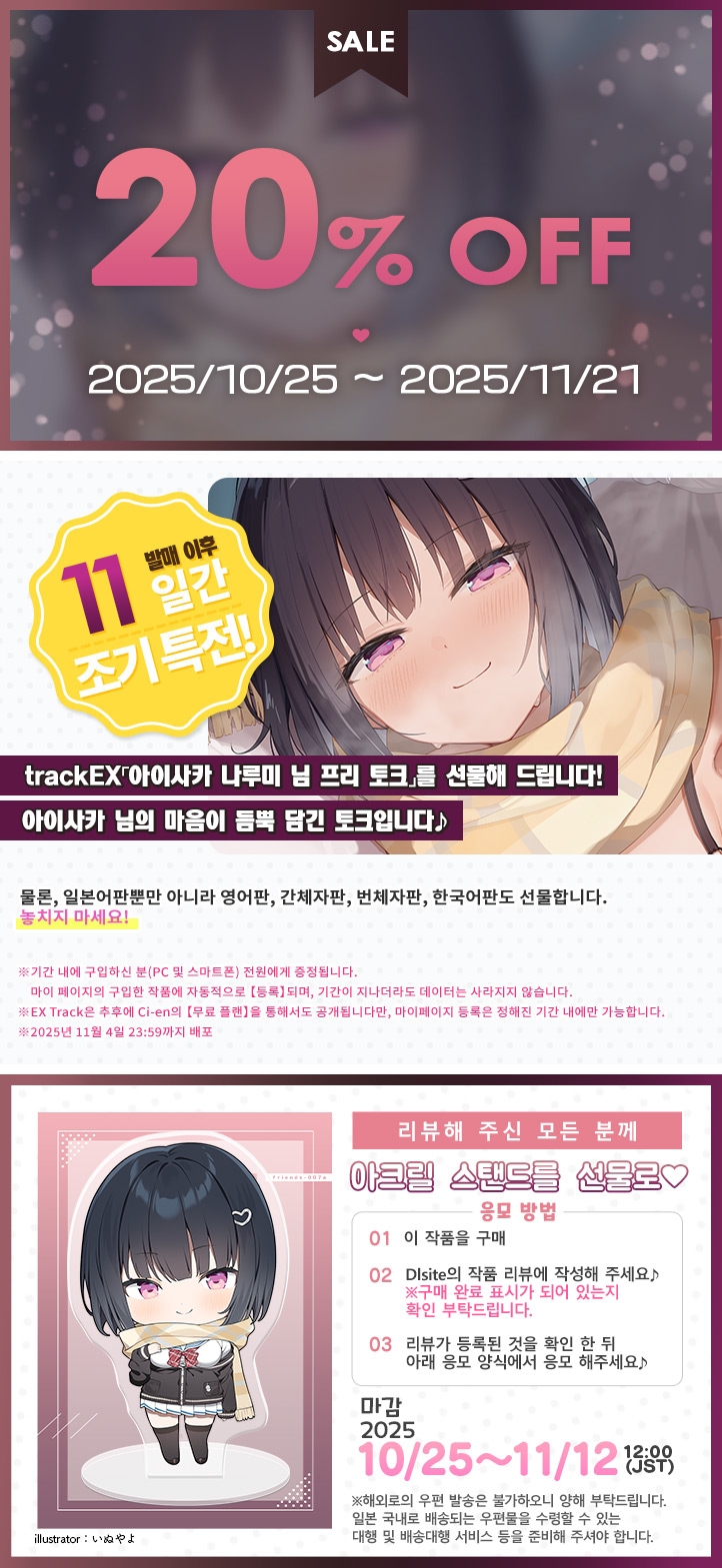 DLsite, 출연자, 일러스트레이터, 대본 담당자 등 공식적인 문의는 삼가 주시기 바랍니다.