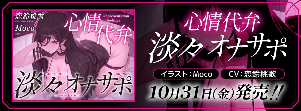 次回作品「心情代弁淡々オナサポ」予告公開中です♡ ♡♡10月31日発売♡♡ ↓お気に入り登録はコチラから↓ ttps://www.dlsite.com/maniax/announce/=/product_id/RJ01483656.html オナサポ本舗は毎『月末』新作発売! 次回作もお楽しみに…♡