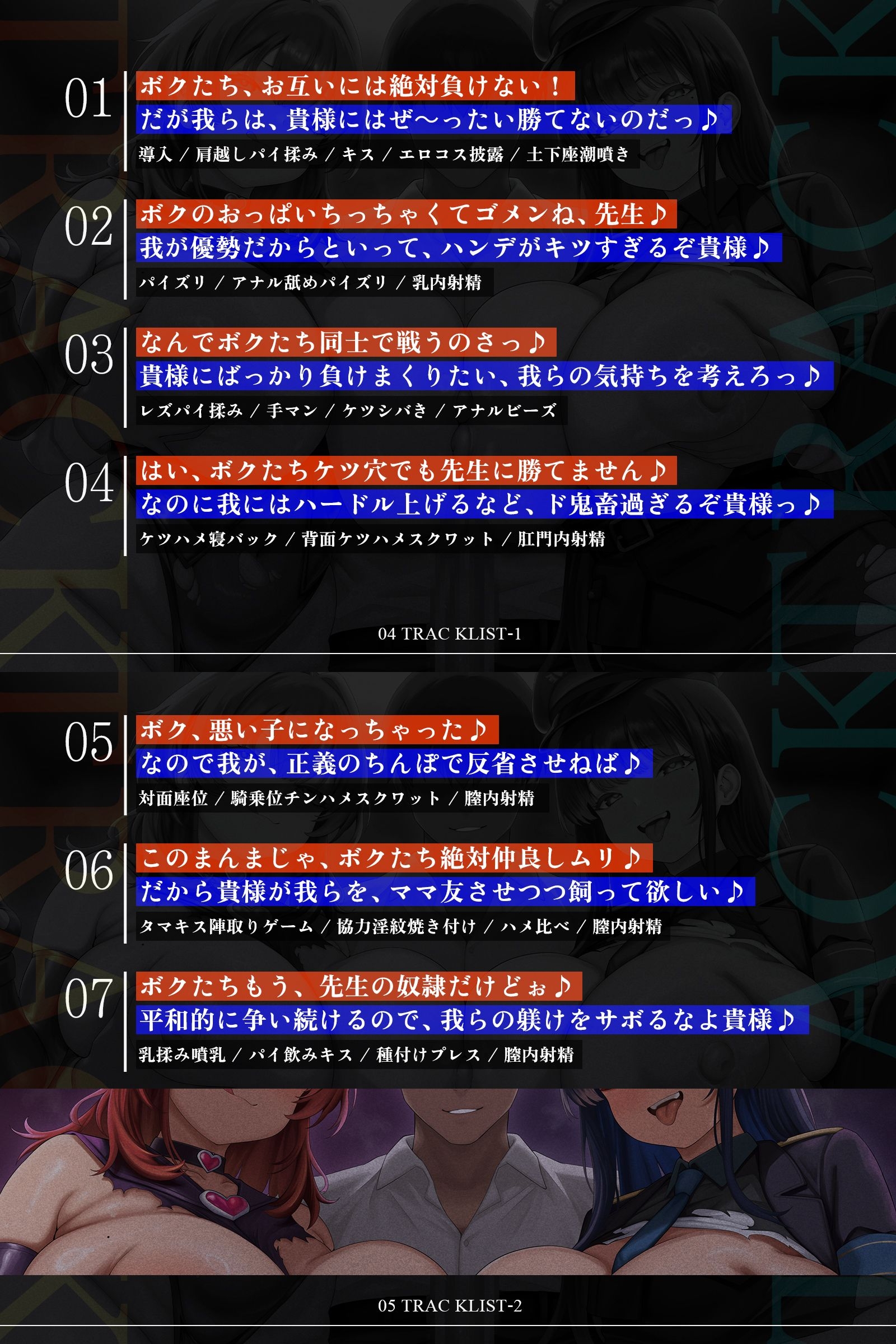 1) ボクたち、お互いには絶対負けない! だが我らは、貴様にはぜ~ったい勝てないのだっ♪(導入、肩越しパイ揉み、キス、エロコス披露、土下座潮噴き)